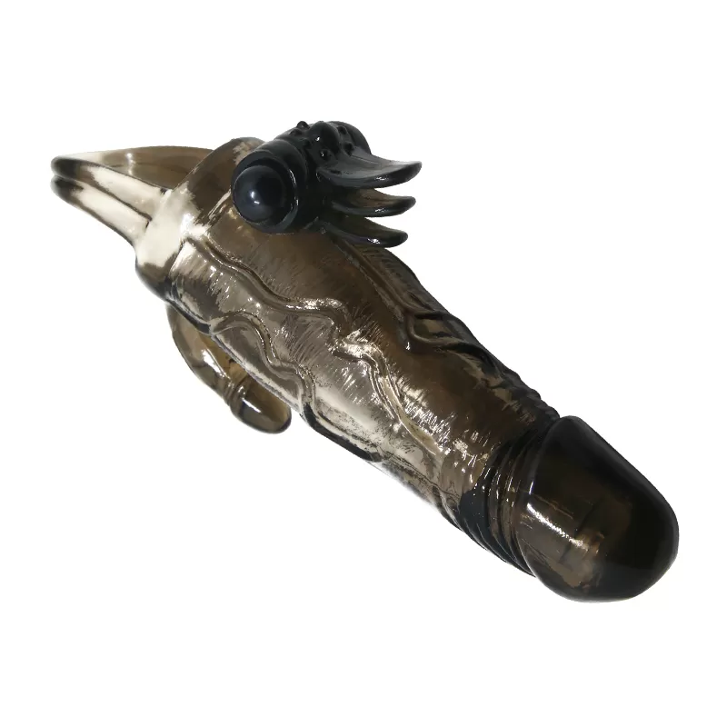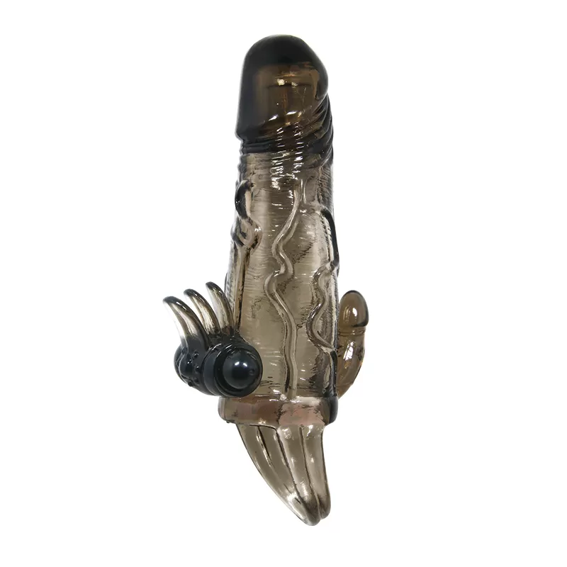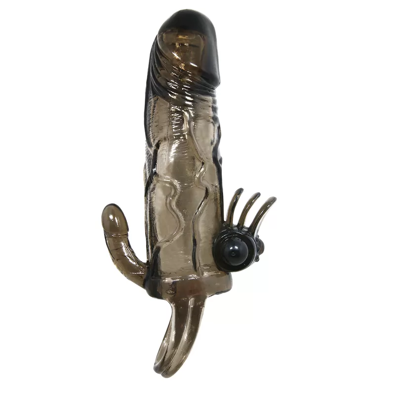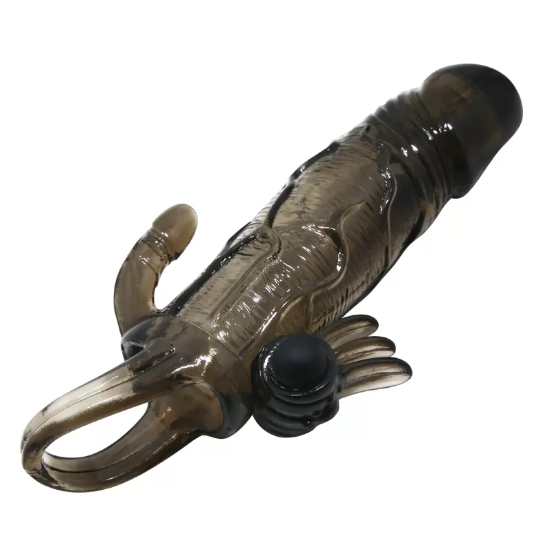 BRAVE MAN Uzatmalı Klitoris Anal ve G-Spot Uyarıcı Titreşimli 3 in 1 Silikon Penis Kılıfı