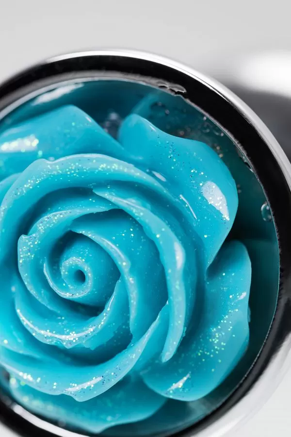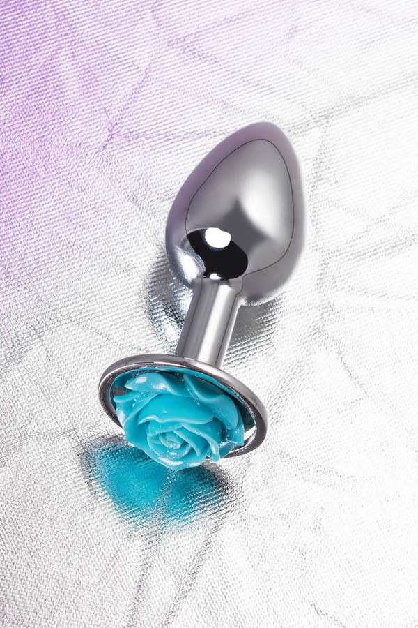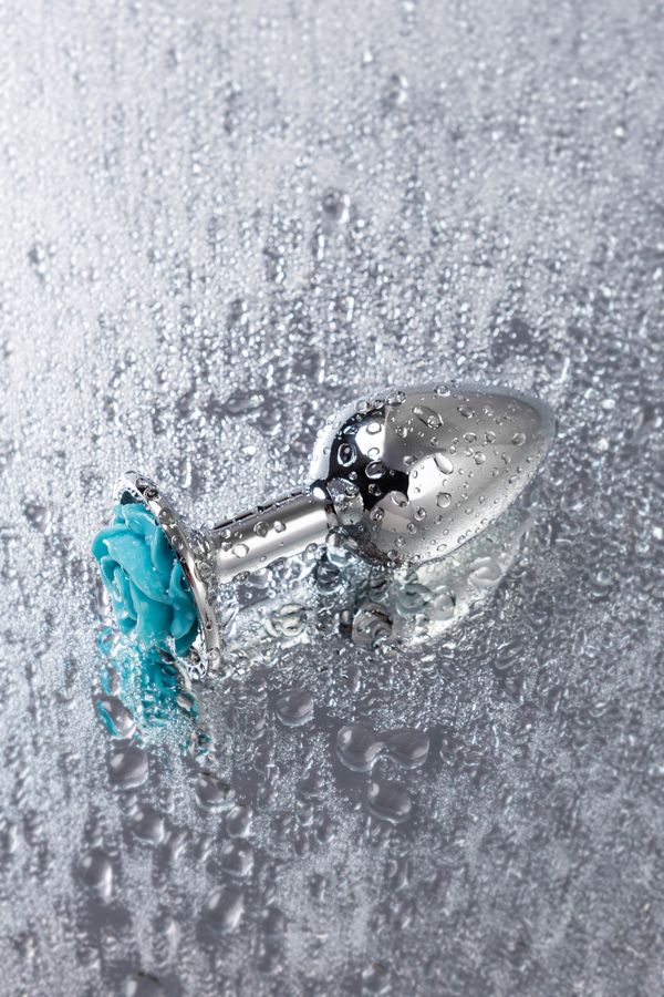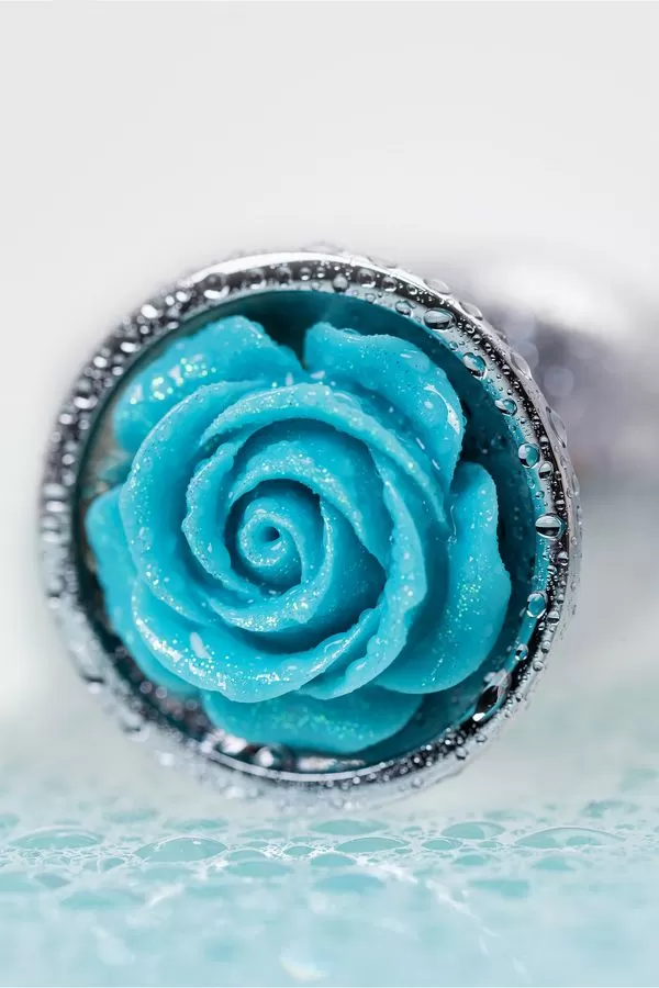 Mavi Taşlı Özel Gül Tasarımlı Metal Anal Plug Tıkaç