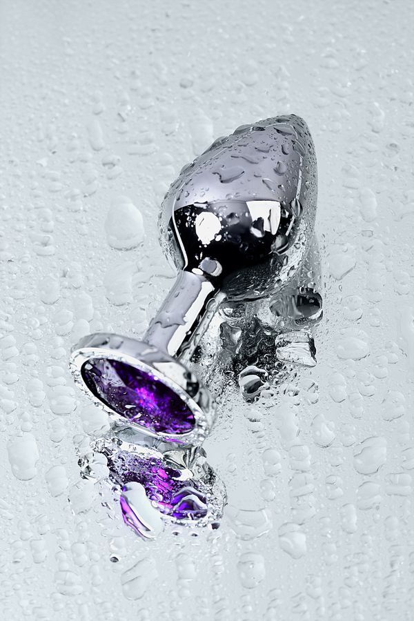 Mor Metal Taşlı Özel Mücevheratlı Orta Boy Metal Anal Plug Tıkaç