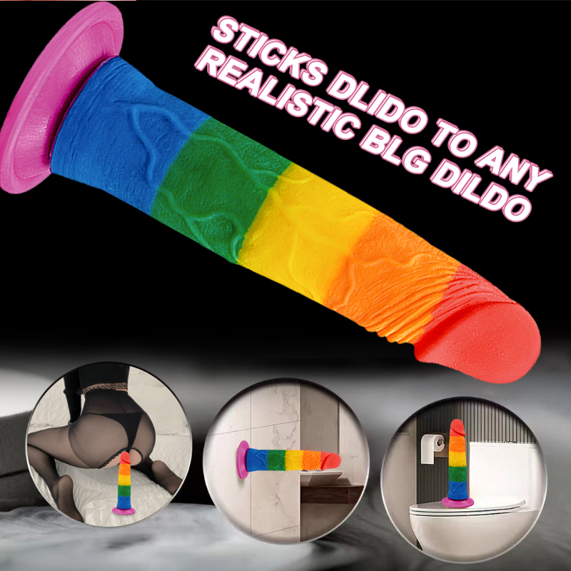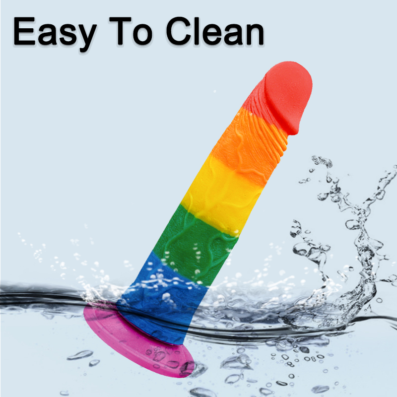 Pride Special Edition Dildo 18.5 CM - Gökkuşağı Renkli Silikon Ultra Realistik Yapay Penis Testissiz Vibrator